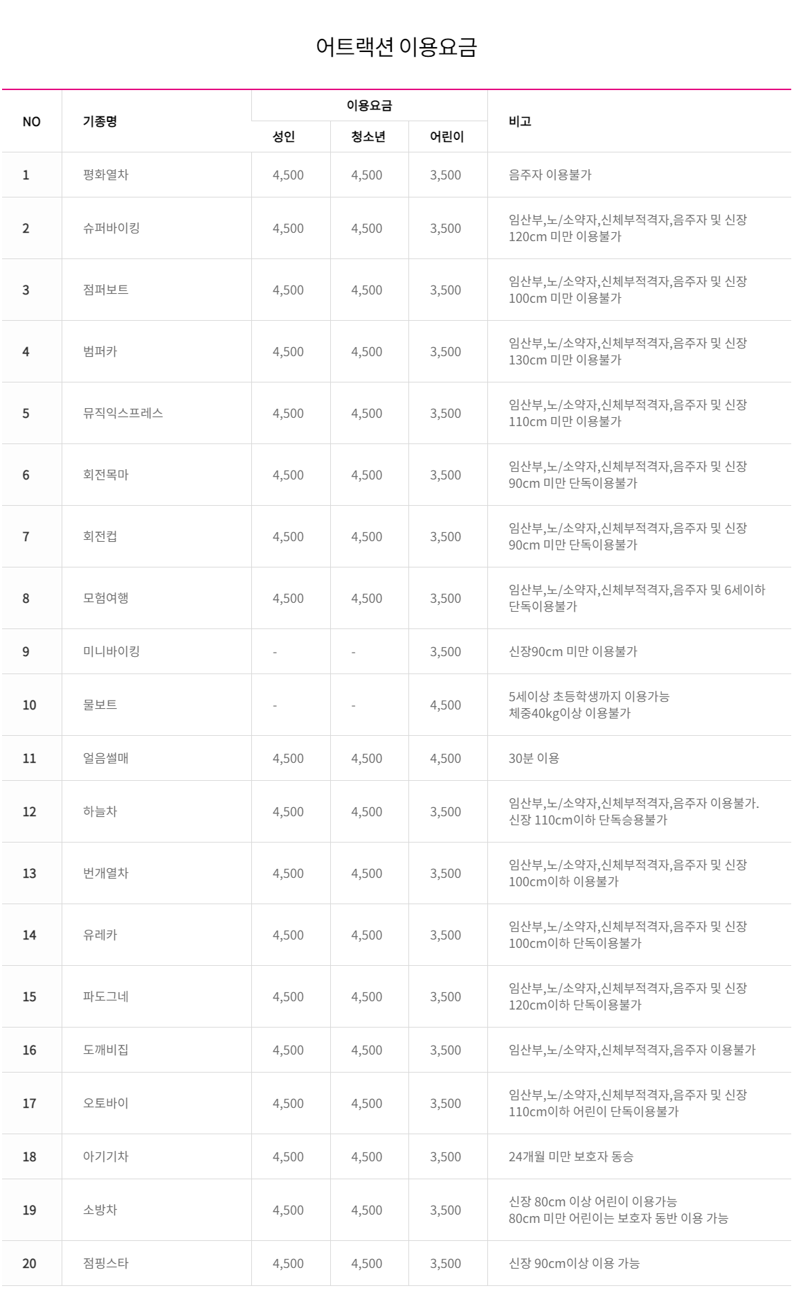 평일 주말 상관없이 이용이 가능하며 오전 11시부터 하절기 동절기에 따라서 폐장시간은 다르다