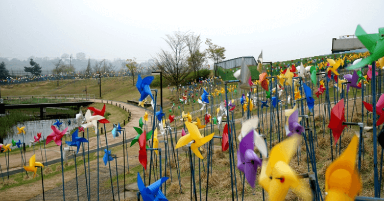 평화누리공원의 대표적인 장소는 공원 안쪽에 있는 바람의 언덕 바람개비이다 평화누리 공원 전체가 잔디밭으로 뒤덮여있는데 그 잔디밭 위로 셀 수 없을 정도로 많은 바람개비가 있다 바람이 한번 불어올 때마다 장관을 이루어 연인 가족들 관광객들의 대표 휴식지 이자 포토존이다